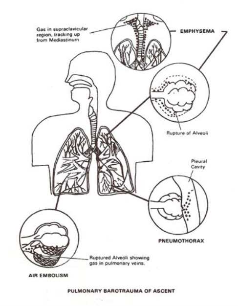 The various clinical manifestations of a ruptured lung on ascent.