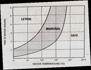 This graph gives an indication of approximate survival times of an uninsulated human in
