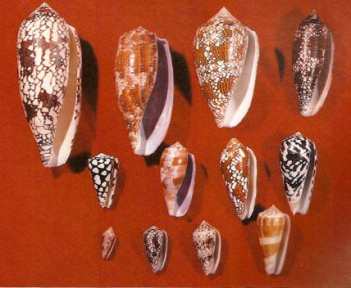 A collection of venomous cone shells