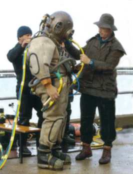or copper helmet, usually connected to a heavy duty dry suit. The depth of the dive determines the